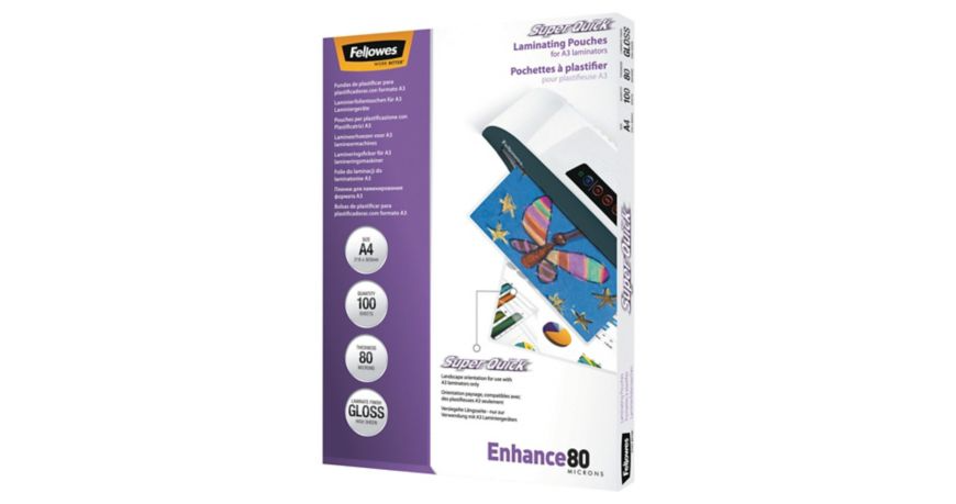Folia do laminacji Fellowes, grubość 160 mikronów, format A4, pakowana w 100 sztuk – idealna do ochrony dokumentów.