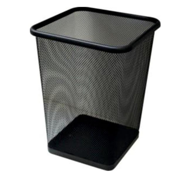 Kosz na śmieci, metalowa siatka, kwadratowy, kolor czarny – wytrzymałe i stylowe rozwiązanie do segregacji odpadów w biurze.