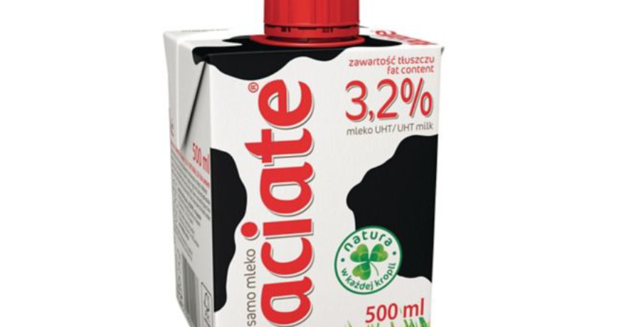 Mleko UHT Łaciata 3,2%, opakowanie 0,5L – poręczne do indywidualnego użycia w biurze.