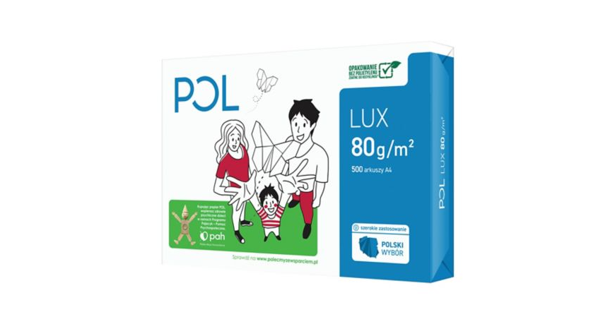 Papier do drukarek Pol Lux, format A4, gramatura 80 g/m², opakowanie zawiera 5 ryz po 500 arkuszy – idealny do biura.