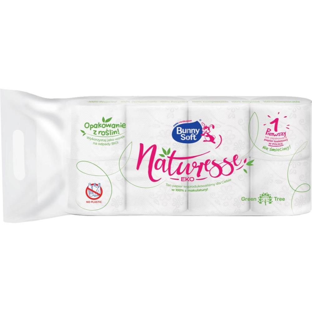 Ekologiczny papier toaletowy, naturalny kolor; 8 rolek; wykonany z makulatury