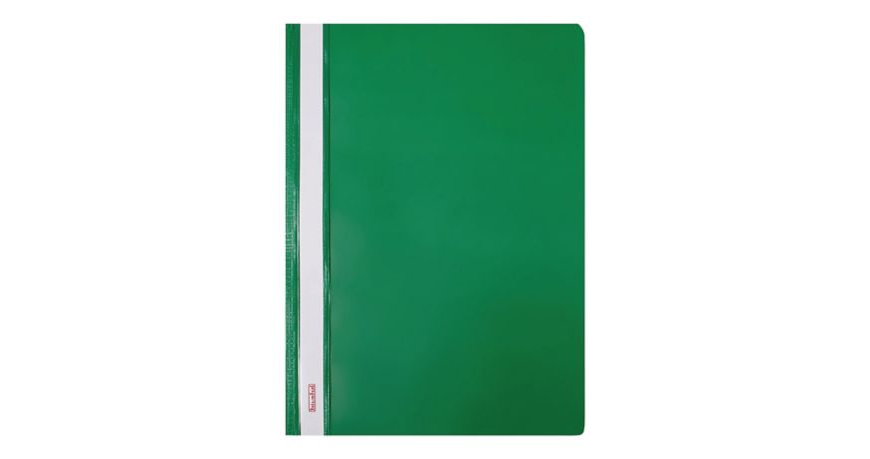 Transparentna, pierwsza strona skoroszytu, pozwala na szybką identyfikację zawartości. Elegancki, zielony tył prezentuje dokumenty estetycznie i stylowo w każdym miejscu.