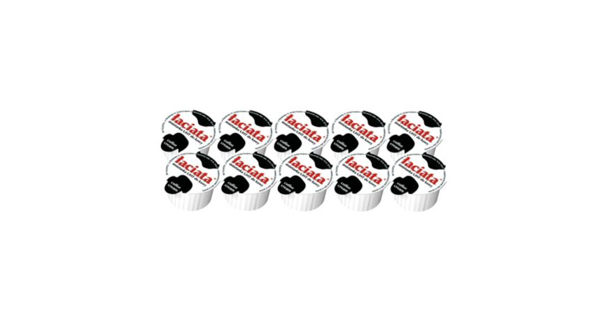 Śmietanka do kawy Łaciata, opakowanie zawiera 10 kubeczków po 10 ml każda, doskonała do wzbogacenia smaku kawy.
