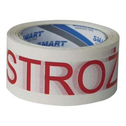 Taśma pakowa OSTROŻNIE 60m x 48 mm, biała z czerwonym napisem, 1 sztuka